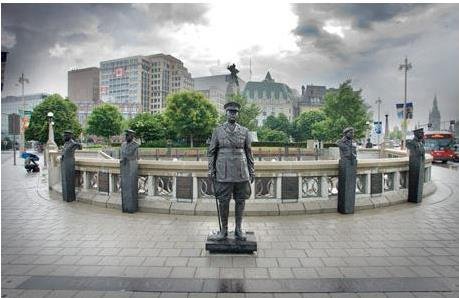 "On November 05, 2006, Governor General, Michaelle Jean, the Honourable Gregory Thompson (Minister of Veterans Affairs), the Honourable Gordon O’Connor (Minister of National Defence), unveiled the new Valiants Memorial, in Ottawa, on the northeast side of the National War Memorial. The new Memorial is a collection of nine busts and five statues depicting individuals from critical periods of conflict in our nation’s history, as well as a large bronze wall. The men and women honoured in the Memorial were selected on the advice of the Valiants Foundation, composed of distinguished military historians. The Memorial honours these fourteen valiant men and women for their heroism during five periods of conflict and resolution which marked Canada’s road from a seventeenth century European colony to a twentieth century North American nation. The inscription on the wall reads: Nulla dies umquam memori vos eximet aevo,