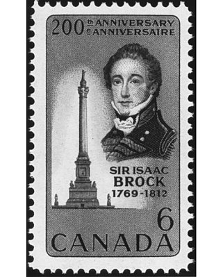 In 1969 Canada commemorated the 200th anniversary of Brock's birth with a six cent stamp featuring Brock and his monument.