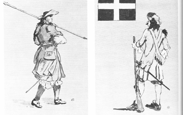 Settlement in New France was slow because its chief industries, fishing and fur-trading, did not require a sizeable population but instead flourished with few people. To facilitate the growth of the colony charters were granted to the early companies which required them to colonize New France. They failed to fulfill this task and by 1663 the population of New France was no more than 2,500 souls. Agriculture developed so slowly the colony was unable to feed itself and depended on food for the table from France. Even the supply of fur pelts was reduced to a trickle because the feeble colony was unable to defend itself from the relentlessly ruthless raids of the Iroquois. Colbert wanted New France to become a "compact colony" that was self-reliant and defensible with a prosperous agricultural foundation and its own basic industries in the St. Lawrence Valley. In a letter to Frontenac in May of 1674 Colbert stated that "you should not make long voyages up the St. Lawrence River, nor even that in the future the colonists should spread out as much as they have done in the past. Strive to crowd them together and to group and settle them in towns and villages and so give them the greater possibilty of protecting themselves wsell." Before his master plan could succeed, New France had to become self-sufficient, something that would not occur until the colony was able to keep its citizens safe from Iroquois incursions. The Iroquois "by the massacre of numbers of French and by the cruelty which they exercise on those who fall into their hands prevented the country from being more populous."Frontenac was to make exceptions to this rule only if it were necessary to take possession of lands in order to protect French commerce and trade from other countries. Otherwise rather than go to the Natives for furs, let them come to you. Louis XIV responded to the pleadings for protection and resolved "to carry the war to their doors and to exterminate them entirely." To accomplish this pledge 24 companies of regulars were dispatched to Canada during 1665 of which twenty belonged to the Carignan-Salieres. This regiment's rescue operation was intended to provide a breathing space for the colony to establish an economy and a social-political organization. The total number of troops involved exceeded 1200. As the troops in their broad black hats, grey tunics and mauve stockings marched up the winding road to their barracks on the heights above the St. Lawrence, the bronzed veterans - musketeers, pike-men and grenadiers - brought hope to a despondent Canada. Now for the first time the colony could take the offensive against her enemies. During the summer four companies were sent to the Richelieu River where they constructed a series of forts along the water highway of the Mohawk. Great rejoicing greeted the arrival at Three Rivers of a flotilla of a hundred canoes filled with furs brought by Natives who had successfully run the Iroquois blockade of the Ottawa River. The first punitive raid on the Mohawak took place in January 1666. Soldiers suffered from frostbite and the unfamiliarity of travelling on snowshoes. Accounts recorded that ears, noses, fingers, hands and knees were frozen as the men, paralyzed by the cold icy blasts and by snowblindness, were dragged by companions to little snow shelters. This less than successful assault was followed by another in September involving a formiddable force of 1200 men. The Mohawk deeming it unwise to make a stand against such a force decided descretion was the better part of valour and simply disappeared into the bush. The French after sacking and burning their abandoned towns returned to Quebec. While no major engagement occurred the Mohawks were impressed with French power and gave serious thought to a negotiated peace. Given pause to ponder they concluded a peace treaty before winter which ensured security for nearly twenty years. Having contributed to the colony's defence, the soldiers then contributed to its growth. When their tour of duty was over many soldiers settled on the banks of the Richelieu River, the one-time warpath into Canada of the mortal enemy of the French colony - the Iroquois.