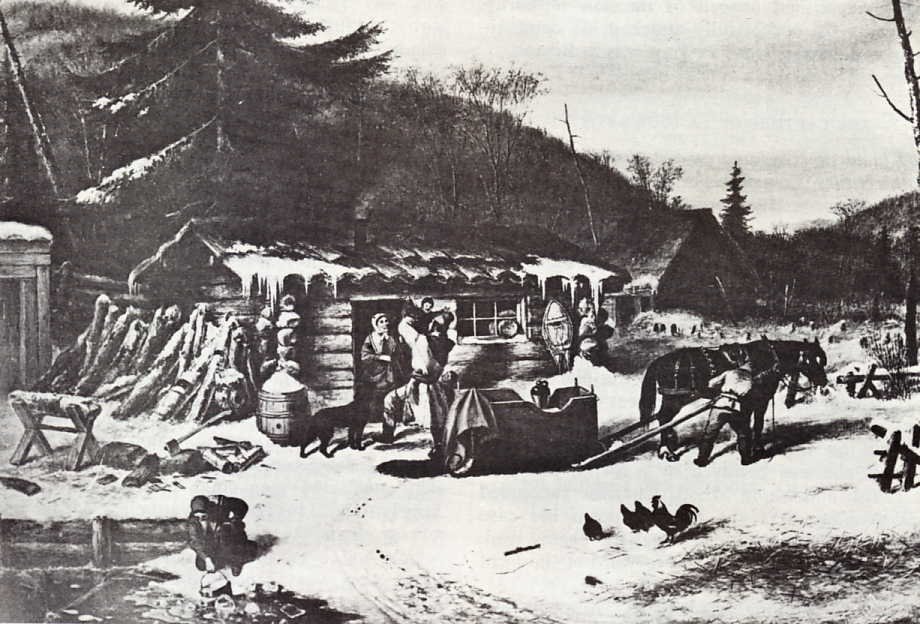 In 1674 New France became a royal colony and was given the same kind of constitution each province had in France. While the British colony of New England had an elected assembly which was deeply involved in governing the colony, New France was always under the direct control of France and completely dependent on it. New France was given a governor appointed by the French king and responsible to him. The governor lived in Quebec, carried out the king's policies and directives and was assisted by associate governors in Montreal and Three Rivers. The governor commanded the military operations and oversaw Indian affairs. In peace time the real power lay in the hands of another important official, the intendant, who was responsible for local administration, justice, police and finance. The society of New France mirrored 17th century society in France. It was fashioned on authoritarian lines with power concentrated at the top of society - the sovereign. Colonists had no official decision-making powers and were expected simply to obey the authorities. There were no provisions for self-government. The monarch was absolute; land tenure was feudal and commerce was controlled by the merchant-capitalists. These systems were transplanted to North America and adapted to the needs of the new colonial community. The feudal society and its relationships were based on the holding of land. Land in the early 17th century was regarded as the basis of all real wealth. Social status was all-important and it was measured to no small degree by the amount of land a family owned. With feudalism the lord owed duties to the sovereign and military leadership to his tenants. Tenants in turn owed obedience and armed service to him. The people of New France were drawn from limited areas within France. They came mainly from Normandy, the neighbouring provinces and from Paris. With few exceptions they were northerners and the northern French followed the maxim: "No land without a lord," In New France the power of the state was rarely absent from the settlers' lives and this is the way they wanted it. Where nature responds easily to nurture, government is normally a nuisance, but in a land where life was hard and where every grain of wheat demanded lots of labour, settlers needed all the assistance they could get. Thus it was in New France and later in Canada. For the big jobs like, for example, building railroads, Canadians had to work as one to accomplish their goals. Private initiative was not up to the task. This resulted in a decided difference in attitude toward government in Canada and in the United States. Commencing a new life in the Canadian wilderness was a daunting prospect and most of the French who came to Canada came because they were sent. Immigration grew out of official policy decisions rather than individual excitement over the lure of the new land. Crossing the Atlantic was a dangerous endeavour. The tumultuous trip could take anywhere from three weeks to more than three months. Conveying passengers was a new concept for which ships were not equipped and crews could not cope with its demands. If headwinds lasted too long food supplies sometimes ran out and scurvy took its toll. As late as the mid-eighteenth century if fewer than ten per cent died en route it was thought to be a good trip. Little wonder few voluntarily set out on the endless sea to take their chances in the wilderness of Canada. The land-holding system of old France, seigneurialism, was introduced into Canada but under Canadian conditions it had been softened and improved. Under the seigneurial system companies were given large tracts of land (estates) which were then ceded to seigneurs, who were literally lords but were actually squires, gentry, gentlemen or persons of merit. Seigneurs, who lived in a manor house, were granted large landed estates called seigneuries.