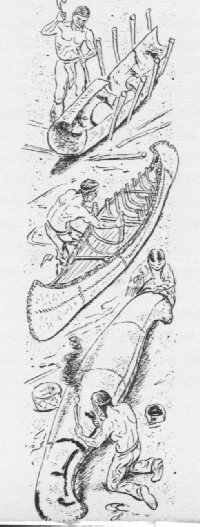 "We have lived upon this land from days beyond history's records, far past any living memory, deep into the time of legend. The story of my people and the story of this place are one single story. No man can think of us without thinking of this place. We are always joined together." After crossing to Alaska fifteen thousand years would pass before the flow of nomads finally slowed and stopped on the barren rocks of Patagonia. The migrants belonged to either of two distinct families: Indian or Inuit. They resembled each other in the colour of their skin which ranged from brown to yellow but not red. The First Nations owed their allegiance to their family, their band, their village, their tribe and in the case of several tribes, their confederacy. Families grew into clans and clans into tribes and depending on their access to good hunting and fishing. They occupied defined territories which they claimed as their exclusive property. The lands belonged to the tribe collectively and were not divided among its members all of whom had equal rights. Strangers were not welcome. There was no concept of a pan-Indian idenity. Each tribe spoke its own language and regarded its members as "the people." This absence of a recognized common lineage was a significant factor in the Natives' failure to resist the European onslaught. This critical factor was worsened by: their growing reliance on European manufactured products (metal awls, needles and kettles, iron arrowheads and axes); the fur-trade rivalries; the colonial wars; the catastrophic decline in population resulting from exposure to European diseases. Few 19th century historians would have admitted that Canadian history began prior to the arrival of the first Europeans. Prehistoric times were viewed only as a static prelude to real history. In fact Canadian history began thousands of years before the first arrival of European explorers when native people first crossed the Bering Strait. Europeans who came to Canada saw it as an empty land open for settlement. In actual fact Native people claimed and inhabited almost every part of the "New World" from the tip of South America to the to the Arctic coast, from the Atlantic to the Pacific. "Natives swarmed over the continents and islands from the Arctic to Tierra del Fuego creating communities, establishing networks of trails and trade and adapting the land everywhere to human purposes. At the time of European contact there were more than fifty Amerindian groups in Canada alone." The European invasion brought on a Dark Age for the native peoples who were cursed by their conquerors as savages and heathens. The unfair advantage of the written word triumphed in the end. A maxim among historians says that the conqueror writes the history. True to this adage European conquerors praised themselves for bringing civilization and salvation to the Americas." The conquest of the continent of North America is an epic written in the blood and sweat of men and women seeking a place to settle and like all epics it originated with the oral tradition - with tales told around the campfire. Millenia before the arrival of Europeans, Native people were coping in their harsh environments. During antiquity massive mastodon and hairy mammoths trumpeted from the hillsides. The colossal creatures, which roamed over much of North America, were possibly hunted to extinction by the first Stone Age Ice Age people. After the retreat of the glaciers more than 10,000 years ago Native hunters and their families following herds of caribou and other game moved into eastern Canada. About 5,000 years ago the climate stabilized, slowly moderated and became somewhat similar to what we know today. The Bering Strait attained is present width of approximately eight kilometres and land animals no longer crossed between Siberia and Alaska. The temperature change created an environment in which populations grew and dispersed across Quebec. Nomadic Natives roamed in bands constantly searching for food that included birds, moose, deer, caribou and fish. This diet was supplemented with wild berries and nuts and in some settlements wild rice and corn were cultivated. The corn, in fact, was maize, the latter multi-coloured and eaten mainly after drying and grinding. It was strikingly different from the sweet, yellow, uniform kernels which we call corn. Forests were partially cleared for planting by stripping the trees of a ring of bark (girdling) and burning the underbrush. These open areas and cultivated crops also attracted game. During the winter fish, fowl and vegetation were scarce and these seasonal fluctuations in the food supply slowed population growth. Despite the absence of the wheel and metal tools, Canada's first immigrants made remarkable advances and achievements. An Iroquois prayer sought the secrets of their world. "Make me wise so that I may know the things you have taught my people, the lessons you have hidden in every leaf and rock." They set about developing sophisticated societies that conformed to local conditions. The list is almost endless of the skills with which Natives accommodated themselves to nature and lived successfully in a demanding environment that was unforgiving of any failure to face and understand it. Early chroniclers were fascinated with the gadgetry and the woodcraft that were developed in the process. Stone Age people shaped stone into knives, axes, gimlets, scissors, hammers and scrapers to which they tied wooden handles with skin lanyards. They fashioned bones, horns and antlers into needles, awls, combs, and heads for spears, arrows and harpoons. Using hardened wood they made hoes and primitive mattocks and wove branches of young trees and plants into hampers and all-purpose baskets. From soapstone they made bowls and lamps, utensils and ornaments. Tribes that knew nothing about pottery-making cooked their food by inserting it in birch bark or skin receptacles which they placed into water heated with hot