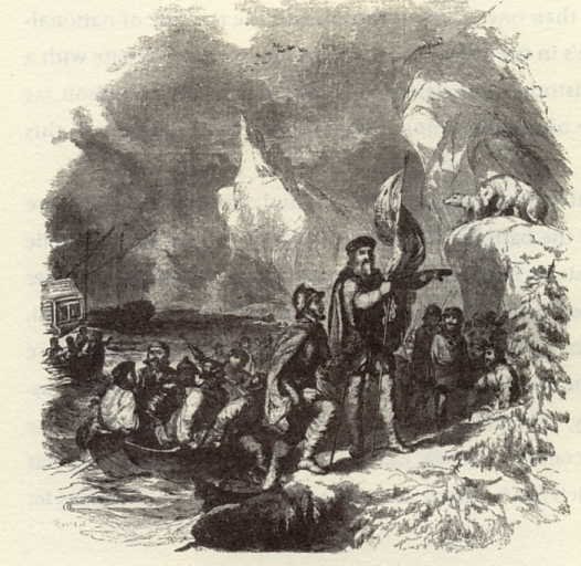 When a Norwegian archeologist, Helge Ingstad, discovered the site, he found the remains of eight sod houses and evidence of ironworking, carpentry and needlework. Subsequent excavations disclosed hundreds of other artifacts. Ingstad believed that the wine mentioned in the sagas may have been made "from wild gooseberries and the squash-berries that grow in clusters on bushes and from currants or other kinds of wild berries." All these berries are found in northern Newfoundland and for these and other reasons, Ingstad identified Vinland as the island of Newfoundland. It was left to Leiv's brother, Thorvald, to make the next voyage to the new-found territory, for strange as it may seem, Leiv Eiriksson never returned there. Subsequent attempts at settlement of Vinland were unsuccessful, due to strong friction between the Viking settlers and the native North Americans. The first Native war-whoop in recorded history was heard by Thorvald. Mortally wounded by a Skraeling arrow, he declared, "We have found a fine and fruitful country but will hardly be allowed to enjoy it." Viking arms and armour were little better than those of the Natives whose canoes were "so many that the bay appeared sown with coals." The Norse left Newfoundland after a couple of decades deciding because the Skraelings (Viking name for barbarians) caused them nothing but "constant fear and strife," it was not conducive to settlement. A manuscript map dating from about 1440 shows Iceland, Greenland and a substantial land mass west of Greenland with the inscription in Latin, "Vineland Island discovered by Bjarni and Leif in company." This is the earliest known map to show any part of Canada and the North American mainland. Aside from this brief Viking interlude Canada as well as the rest of North America awaited accidental discovery anew by subsequent European explorers simply because both blocked the way to the East PARADISE LOST In Europe the fifteenth century was a brilliant period, the dawn of glorious enterprise and experiment; the birthdate of great thoughts. Throughout the civilized countries of Europe intellectual life awakened and individual enterprise quickened. It was an age of dreams and romance. It seems fitting therefore that the close of the century should have witnessed a remarkable achievement in the field of exploration - the triumph of Christopher Columbus which placed within the grasp of the Old World the untold treasures of the New. Seaborne enterprise set free by the compass burst the confines of Europe and found the New World. In fifteenth century Europe visionaries viewed the far horizon and decided to seek a western route to the Spice Islands, Cathay and the empire of the Grand Khan. The fabled name 'India' suggested to Europeans untold wealth and riches and Christopher Columbus, a Genoese navigator funded by King Ferdinand and Queen Isabella of Spain, set out to find the fabled place. Some seventy days later the welcome cry of 'land' was heard and the veil of mystery overhanging the western ocean was partly lifted. Thinking he had found India when he landed on the island of San Salvador on October 12, 1492, Columbus designated the Natives he encountered 'Indians,' the name subsequently erroneously applied to all Aboriginals living in North, Central and South America. Contrary to their belief, Columbus and his successors were not coming into an empty wilderness but into a world which in some places was as densely populated as Europe itself. The cultures were complex, human relations were more egalitarian than in Europe and relations among men, women, children and nature were more beautifully worked out than perhaps in any place in the world. History has been described as a document-bound discipline and this suggests arbitrarily that Canada's history began with the arrival of the Europeans. Aboriginals were people without a written language, but their laws, their poetry and their history were maintained in memory and passed on in an oral vocabulary more complex than Europe's accompanied by song, dance and ceremonial drama. They paid close attention to personality, intensity of will, independence and their partnership with one another and with nature. In fact, far from being passive partners in European enterprises as they are oftimes portrayed, they were active participants whose involvement was essential for European survival and success in the New World. What is the proper nomenclature to use in reference to native peoples? "Is it 'Aboriginal Canadians' or 'First peoples' or 'Natives' or 'Indians' or 'First Nations People' or 'Indigenous people'? They're all correct. While we still use the 'Department of Indian and Northern Affairs,' the name Indian has fallen into disrepute. Aboriginals also find demeaning the use of possessives such as 'Canada's aboriginals' and 'Canada's natives,' though 'Native' is acceptable if used to modify 'people' and 'leaders' and 'communities.'" [See Below *] . Historians agree that prehistoric times ended with the arrival of the Europeans in North America in the 15th and 16th centuries. This is deemed the "period of contact" between the two civilizations. Canada was a 'desert' as both the French and the English then called a wilderness, but it was not uninhabited. Beothuk, Montagnais, Huron and Algonquins, all forest people occupied the wooodlands east of the Great Lakes. Their lives on the whole were good with excellent hunting and fishing. For those who wished action they found frequent opportunities for fighting with neighbouring tribes. Periodically hard times resulted from ecological changes and on those occasions hunters were frequently forced to migrate in search of food. Prior to the arrival of Columbus it was thought by some that both the Aboriginal people and the land on which they lived had no real history. It was as though the indigenous people of the Americas had drifted immutably across the millennia until they were discovered by the whiteman. On the contrar