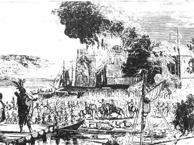 It was a terrible trouncing. British commanders had much to learn about fighting in North America. It was their first and most difficult lesson. They found it hard to change and harder still to accept advice from mere militiamen. Washington, the only member of Braddock's staff not killed or wounded, rode all night to bring word of the disaster back to that part of Braddock's force waiting with the wagons some distance from the fiasco. Washington, who survived the hail of bullets in Braddock's debacle, vowed to be better prepared in a similar situation next time. It never dawned on him that the next time the foe he'd be firing at would be the British. When he did face them across the battlefield, he remembered the rout of the redcoats that shattered the myth of their invincibility. Three years later following the French defeat at Louisbourg, the redcoats and colonials including Washington launched another assault on Fort Duquesne. A different route resulted in another tough march along a hacked-out road through woods, over swamps and up precipitous hills. On November 5 after an exhausting trek in mud and torrential rain, a council of war was called. It was decided that the expedition should proceed no further that year. Shortly thereafter an unbelievable report was received that the French and their Native allies were abandoning Fort Duquesne. The French could no longer mainain this advanced position because the British had captured Fort Frontenac. The British force decided to attack the weakened garrison and on November 24 as they approached the bastion, a great explosion rent the sky. The French had destroyed Fort Duquesne.