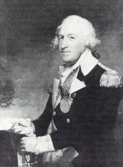 On July 1st Fort Ticonderoga, from the Aboriginal word Cheonderoga meaning clashing waters, came into view. The walls of the stark, grey foreboding fort were softened somewhat by green growth and shaded by the shadows of the forest. The water's edge was guarded by a tangle of undergrowth and an abatis - a rampart of felled trees whose sharpened boughs pointing outwards. The fort was fortified by some 2000 Americans soldiers commanded by Major General Arthur St. Clair, a tall, quiet Scot in his forties with blue-grey eyes and light chestnut hair.