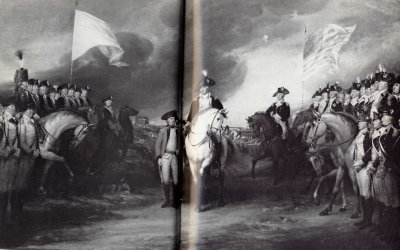 In a letter to Cornwallis, General Washington declared that he wanted to stop "the useless effusion of blood." After only two weeks of feeble resistance, Cornwallis realized there was no hope for his army. As the sick and wounded multiplied by the hour, Corwallis asked his officers should they "Fight to the last man?" They said the men had done all that could be expected of them. "Surrender!" Cornwallis nodded assent. Deciding "it would be wanton and inhuman to sacrifice the lives of this small body of gallant soldiers," Cornwallis ordered a drummer - accompanied by an officer with a flag of truce - to mount the parapet and beat to "parley." On October 17, 1781, four years exactly after Burgoyne's surrender at Saratoga, Cornwallis sent the following letter to Washington. "Sir,I have this moment been honoured with your Excellency's letter dated this day.The time limited for sending my answer will not admit of entering into the detail of Articles, but the basis of my proposals will be that the Garrisons of York and Gloucester shall be prisoners of War with the customary honours and for the convenience of the individuals which I have the honour to command that the British shall be sent to Britain and the Germans to Germany under engagement not to serve against France, America or their Allies until released or regularly exchanged. That all Arms and publick stores shall be delivered up to you, but that the usual indulgence of side arms to Officers and of retaining private property shall be granted to Officers & Soldiers and that the interests of several individuals in Civil Capacities & connected with us shall be attended to. If Your Excellency thinks that a continuance of the suspension of hostilities will be necessary to transmit your answer I shall have no objection to the hour that you propose. I have the honor to be your most obedient & most humble servant." (signed) Cornwallis Simcoe's Queen's Rangers were among those surrendering and Simcoe asked Cornwallis to permit his largely Loyalist Rangers to quietly depart before the capitulation because he knew they would be treated as traitors and dealt with harshly by the American patriots. When Loyalist militiamen were captured by the American military, they were treated as traitors and subject to imprisonment or even execution. Britain on the other hand insisted on treating all patriot prisoners as prisoners of war and as such they were entitled to the courtesies of exchange and parole. A callous Cornwall refused Simcoe's request, declaring that all British soldiers would be treated equally. The Loyalists stood by in a rage while they saw men who had robbed and ravaged their homes paroled to freedom. One Loyalist writer commented, "In this war only those who are loyal are treated as rebels." Simcoe kept tight rein on his emotions whenever he described the surrender at Yorktown in which his intrepid Queen's Rangers were included although they were not surrounded as was the main British force. The Queen's Rangers was an elite outfit which under Simcoe' command exercised a series of gallant, skilful, and successful enterprises against the enemy without a single reverse. They killed or captured twice their own number. Yorktown was the intrepid little unit's first defeat. They were few in number but an elite outfit which under Simcoe's command carried out a series of gallant, skilful and successful enterprises against the enemy without a single reverse. They killed or captured twice their own number and Yorktown was the intrepid little unit's first defeat. At 10 a.m. on the 17th of October the guns fell silent, the only sound the British drummer boy beating a 'parley'. An American officer recorded, "I thought I never heard a drum equal to it. It was the most delightful music to us all." Talks were opened and two days later at noon on October 19th 1781 agreement was reached. The event was recorded in the diary of an American soldier. "Had the pleasure of seeing a British drummer mount the parapet and beat a parley and immediately an officer holding a white handkerchief made his appearance outside their works. The drummer accompanied him beating all the while. Our batteries ceased firing and an officer from our lines ran and met the other and tied a handkerchief over his eyes. The British drummer was then sent back and the officer conducted to a house in the rear of our lines." On October 20th Cornwallis capitulated. When Corwallis learned that Washington would be taking his surrender, a mortified Cornwallis exhibited shameful military protocol by opting out of Britain's abject surrender to what he had earlier described as "an inferior foe." Claiming he was too ill to attend the ceremony, he dispatched Brigadier-General Charles O'Hara to carry out the distasteful duty. With a roll of drums the British appeared, their colour guard carrying furled flags and their bands playing The World Turned Upside Down, an unmilitary, melancholy but most appropriate tune. They were led by O'Hara stiffly erect in his saddle, an extravagant-looking figure in enormous jack boots with double rows of curls hanging about his temples. As George Washington watched from his great bay horse, O'Hara tried to surrender his sword to Washington who anticipating what he was about to do said, "Never from such a good hand." O'Hara then gave it to General Benjamin Lincoln who had been delegated by Washington to receive it. The Americans and their French allies formed two lines. The French soldiers, resplendent in white broadcloth uniforms, "displayed a martial and noble appearance. The Americans, few of whom were dressed in uniforms, stood proudly erect beaming with satisfaction." Between their lines broken-hearted British soldiers wearing for the occasion newly issued red coats marched dejectedly.